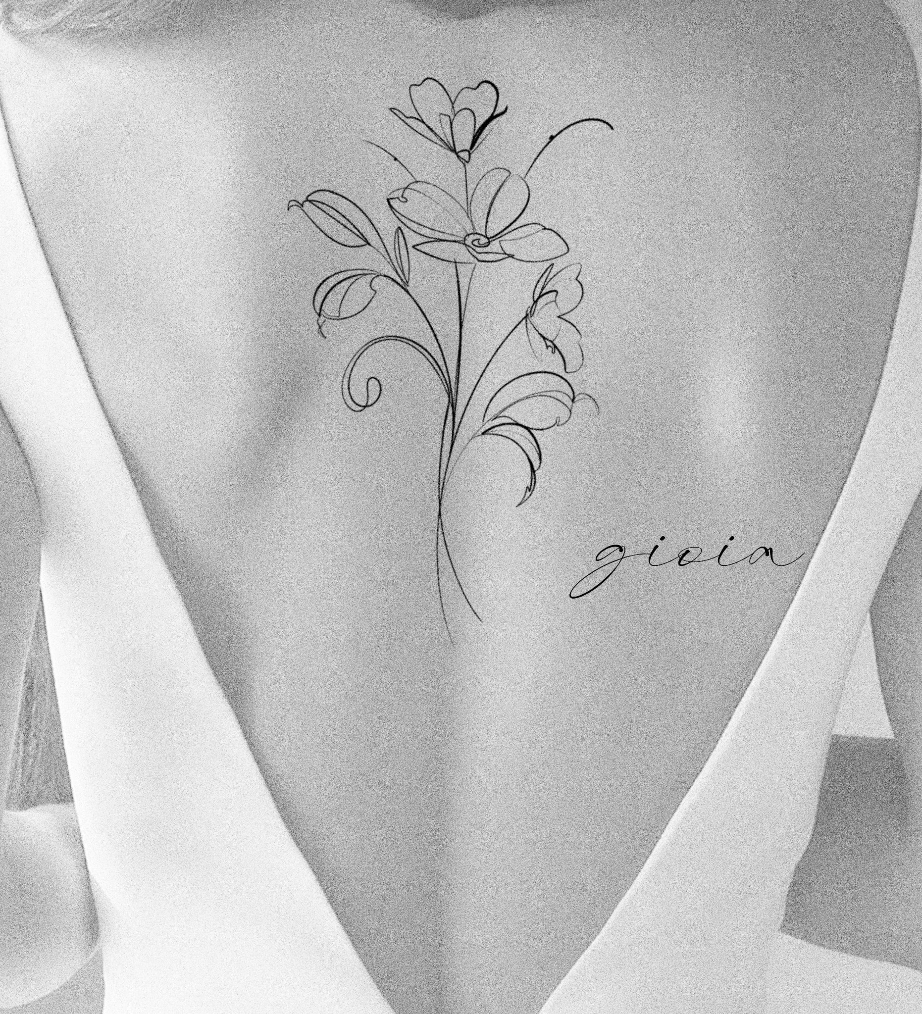 Mit “Gioia” hat Davide ein liebevolles kleines Design geschaffen, das sich ideal an den Oberarm schmiegt. Auch möglich ist es dieses Design etwas größer zentral auf dem Rücken zu tätowieren.